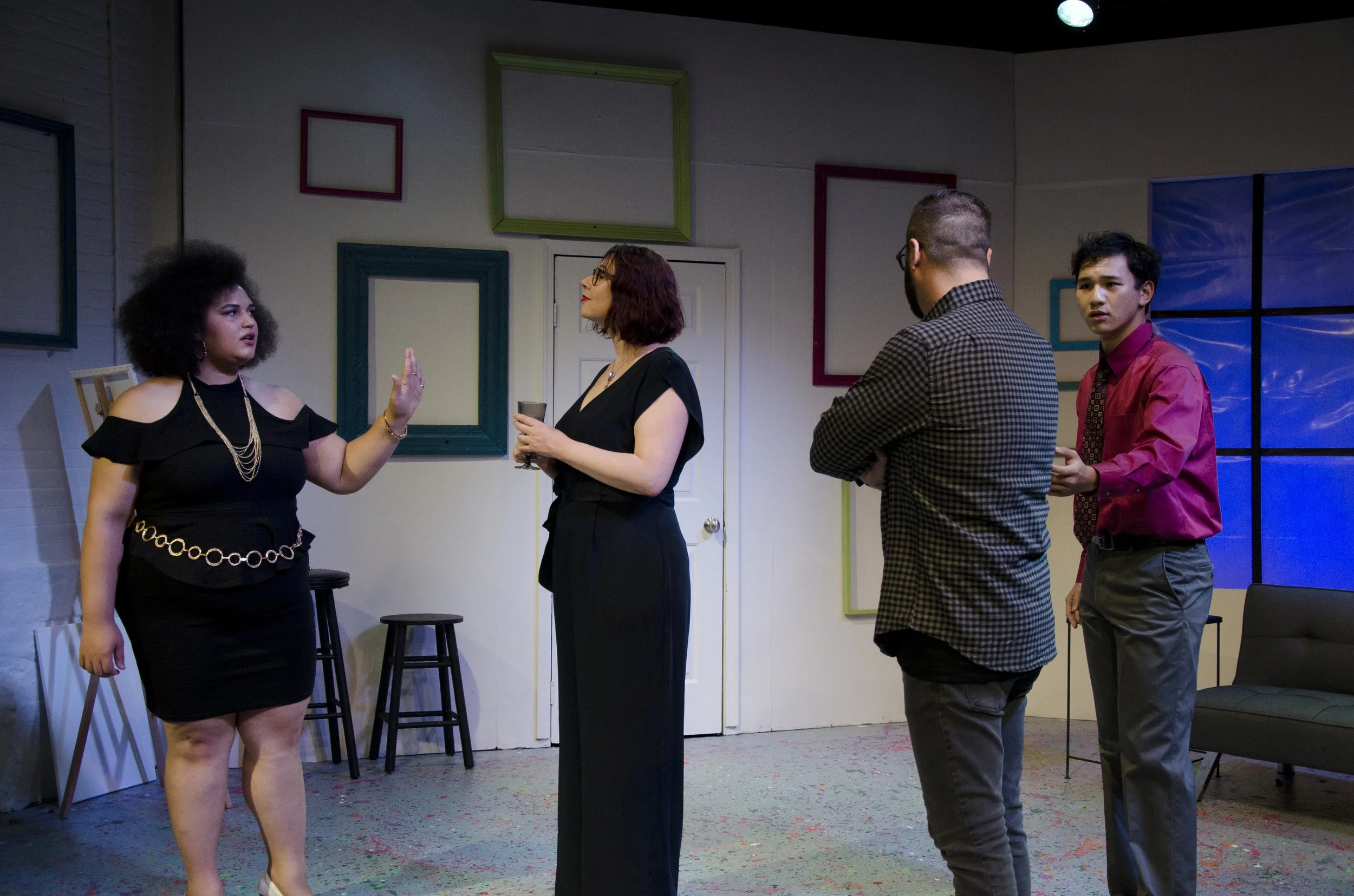 Gus is an artist. Vanessa is an actress. Gus wants to be presented in a major exhibition for artists of color, so he hires Vanessa to perform as Balkonaé Townsend, a brash and political artist that will fit the museum’s desire for “new voices.” Everything is great, until Balkonaé takes over and Gus has to deal with the mess he’s made. This plays spins out of control as it explores issues of race, gender, sexuality, and art.